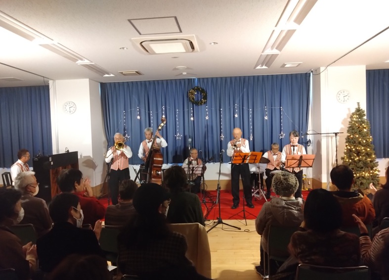 2025年12月14日(日)、昨年に引き続きロイヤル・フラッシュ・ジャズバンドをお招きし、恒例のクリスマスジャズコンサートを開催。100名を超える方にお越しいただきました。ジングルベルや聖しこの夜等のメドレーもあり、クリスマスの雰囲気が高まりました。