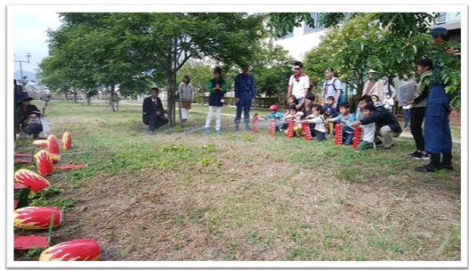 2022年10月26日(土)、日本語教室の学習者(大人、子ども)を対象に消防訓練をしました。消防署から署員の方達にも来ていただき、消火器の使い方を習いました。学習者2名は通報訓練にも挑戦。火事の通報をするという設定で、日本語で電話をかける受け答えする練習をしました。